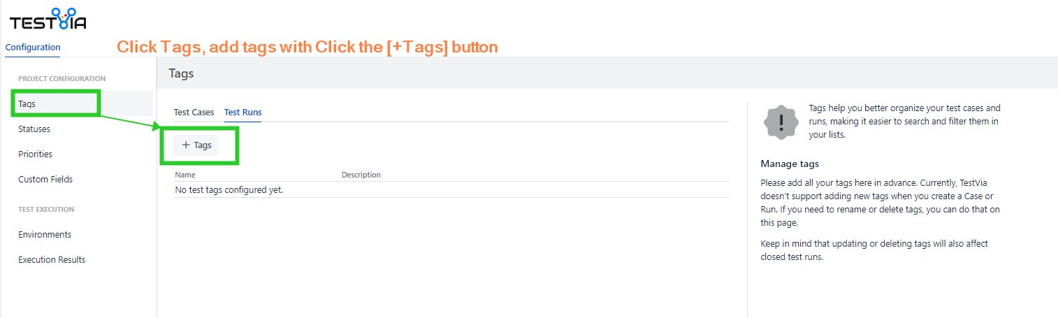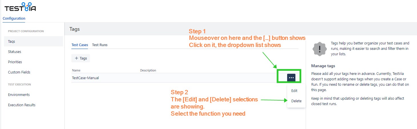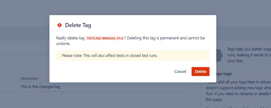 ii. Please be noticed, after deleting the Tags, the cases or runs which already marked will not be changed.