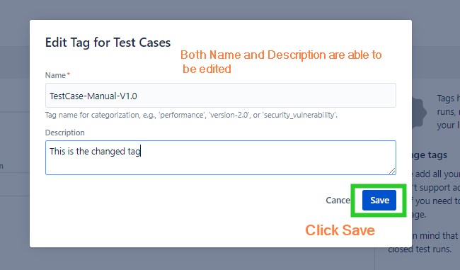 i. Click the Edit button, pop up window Edit Tag for Test Cases shows.