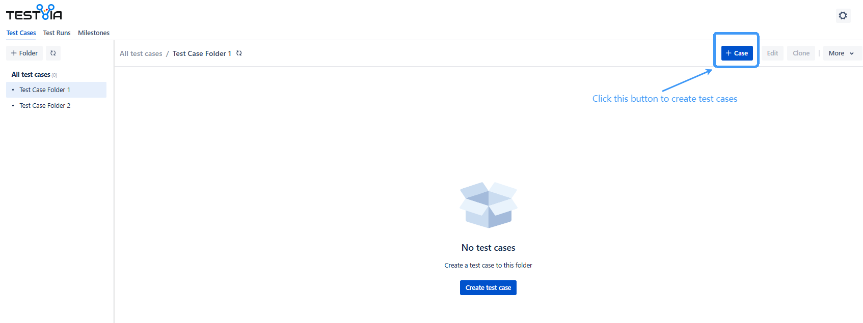- Click the button Create in the test case view, the user should be led to the Create New Case page.