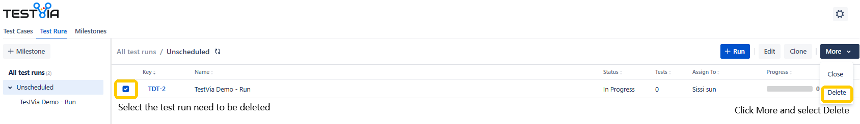 Delete Test Run